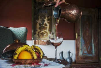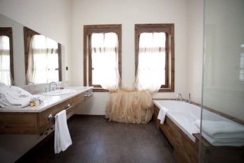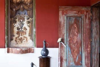in the Selamlık part of Fresco. The room takes its name from the red colour. The harmony of the contrasting colors is conspicuous in the room. In bedroom, there are 150 years old frescos. In that period, these frescos which are in the center of the wall called “ gateway to heaven” or “curtain of heaven”. The founder of Haremlik and Selamlık part of Fresco paid 1 gold coin for 1 meter fresco. In order to protect the frescos, second owner of mansions bribed the shepherd to pass his sheep herd from another way (far away from mansions and the routes were determined based on wind route). By the way, the dust of the sheep herds did not damage the frescos. Owner of the mansions cleaned the frescos with natural mineral water in spring time.