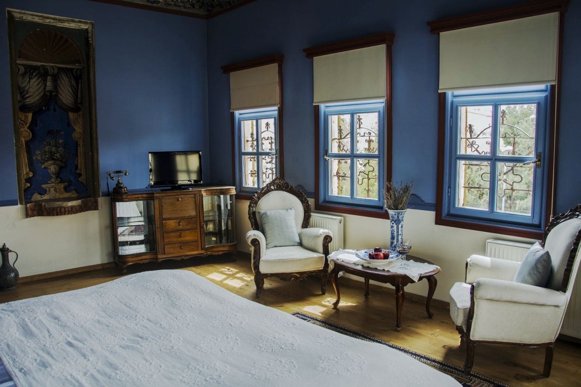 MOR ODA, in the second floor, is a very unique room. It includes two mansions room together. In the room you may see the orıgınal frescos on the ceiling. It has a special balcony .thİs room is perfect for bıg families.
