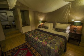 Munise, in the second floor of Fresco, is a cave room of the Yesari Bey Mansion. The room which is in front of the pool yard, takes its name from the last Ottoman Shek-ul Islam Hayri Efendi’s wife. Mrs Munise has lived in this part of Fresco for many years and moved to the adjoining mansion of her parents. After the moving, Mr. Yesari (Munise’s brother) donated the mansion to Akıllıoğlu family because of taking care of Mrs. Munise very well. The living room has a stone arch and there is a cave bathroom which looks like an underground city.