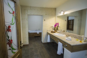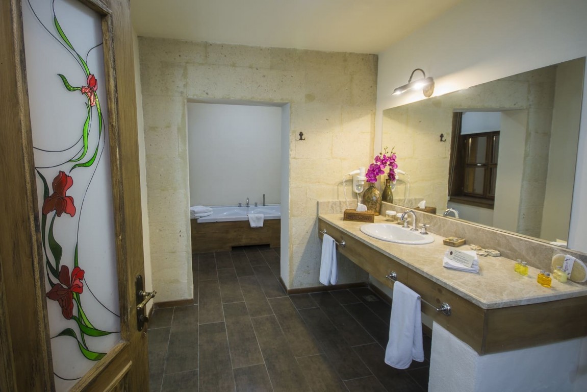 Kırmızı oda, in the third floor, is a mansion room of Yesari Bey. The room, painted with natural herbal paintings, is connected with the Amberli Room. It can also be useful for families. The room has a little terrace and a huge bathroom.