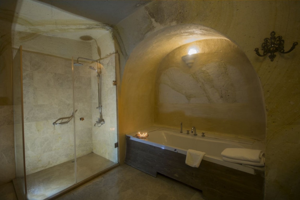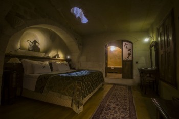 Delikli Mağara otelimizin birinci katında bulunan tamamen mağara olan özel bir odamızdır. Tepesinde bulunan delikten adını alan odamızın çok geniş bir banyosu bulunmaktadır.