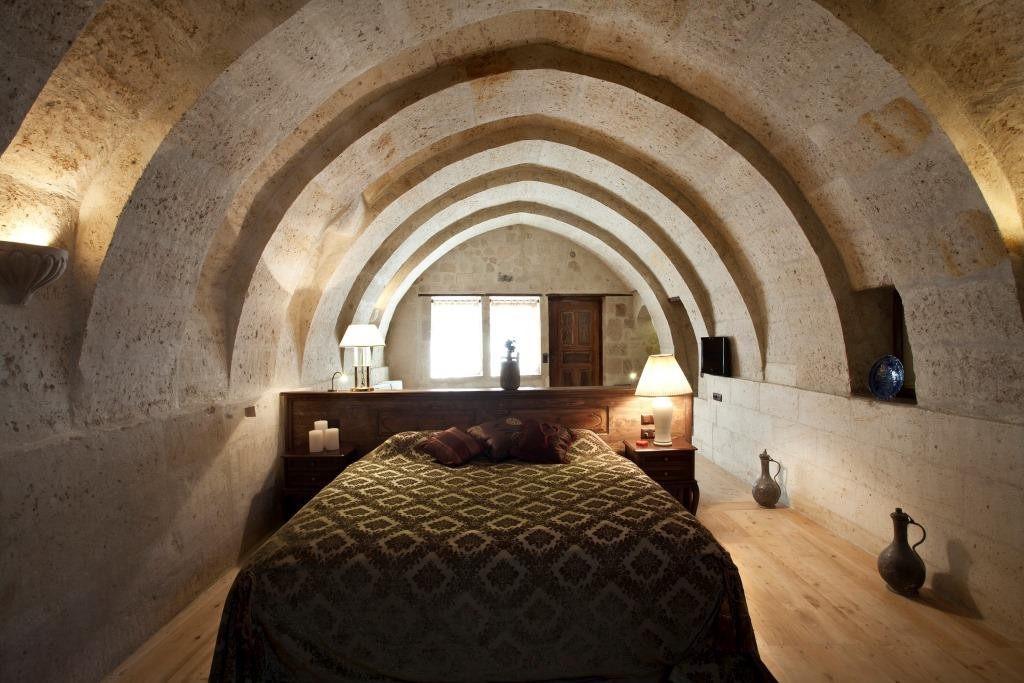 Büyük Kemerli Oda, otelimizin birinci katındadır. Büyük bir kemer odadan ve mağara banyodan oluşan oda oldukça geniştir. Yatak kısmının tam karşısında eşi benzeri olmayan soğumuş lavların (çizgi pasların) oluşturduğu desenler mevcuttur.